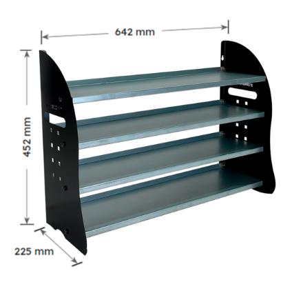 ✅ Estantes de chapa metálica (x4): 640 x 170 x 15 mm